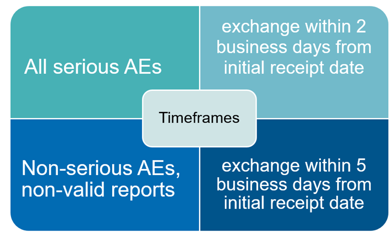 SDEAs are designed to clearly set out each party’s obligations and activities/responsibilities. Appropriate provisions in the contract prevent duplication of PV activities or accidental omission of required activities. Moreover, SDEAs include detailed timeframes for safety data exchange as presented in Figure 2. Clearly described rules of cooperation reduce the risk of non-compliance. Close and efficient cooperation between the parties to the Safety Data Exchange Agreement leads to greater effectiveness in drug safety supervision.